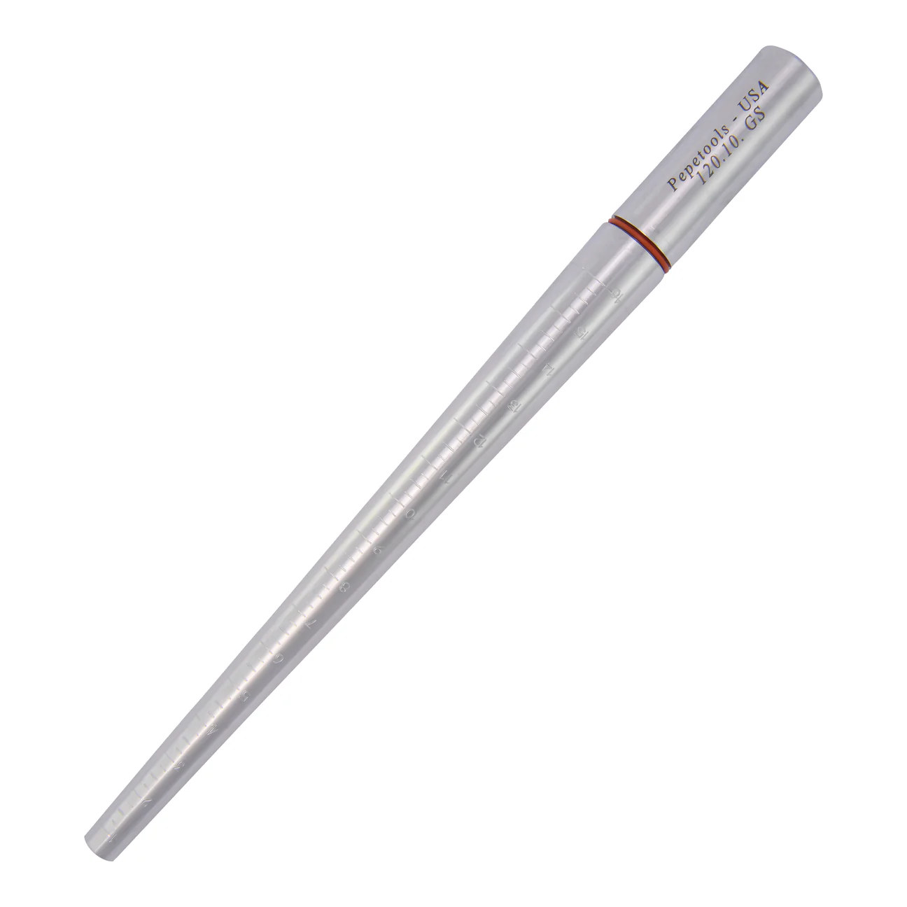 Pepetools Gold Standard sērijas Euro Mandrel Graduated with Groove ir ideāls instruments juvelieriem, kas strādā gan ar ASV, gan Eiropas gredzenu izmēru sistēmām. Šis meistarīgi izgatavotais stiprinājums no rūdīta un pulēta tērauda ir iegravēts ar precīziem, viegli nolasāmiem mērījumiem abos izmēru standartos, nodrošinot nemanāmu pārnešanu un izmēru precizitāti uz darbagalda.